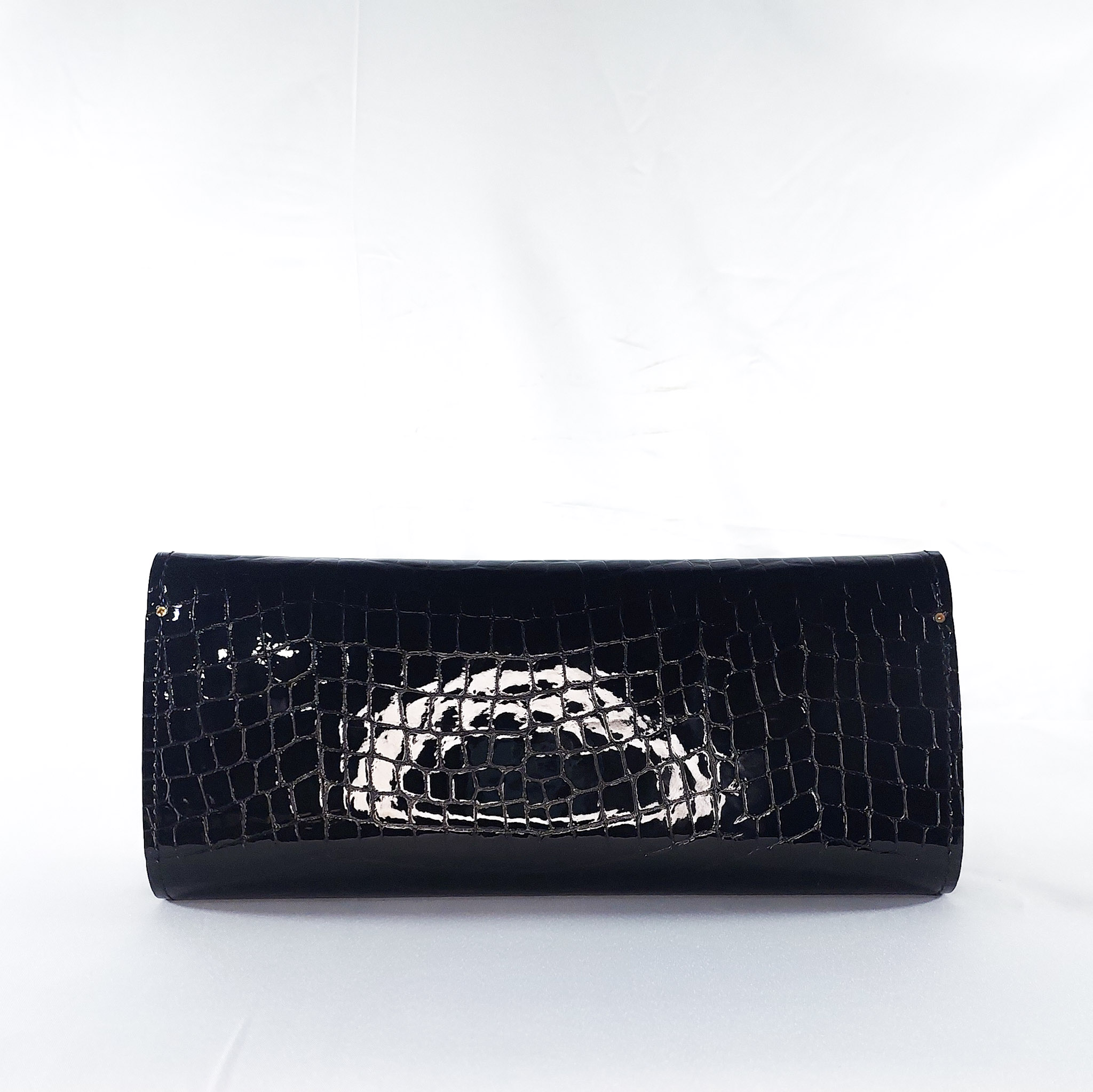 GLOSSY BLACK CROC DZIFA CLUTCH